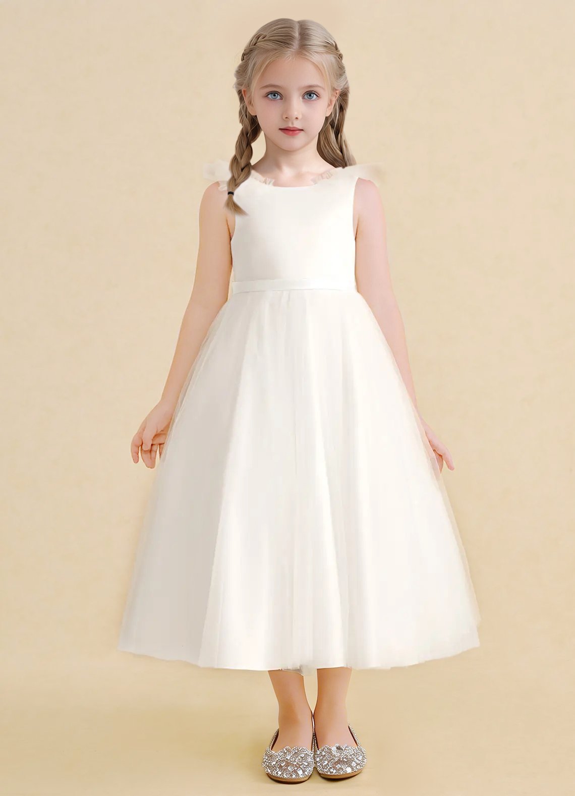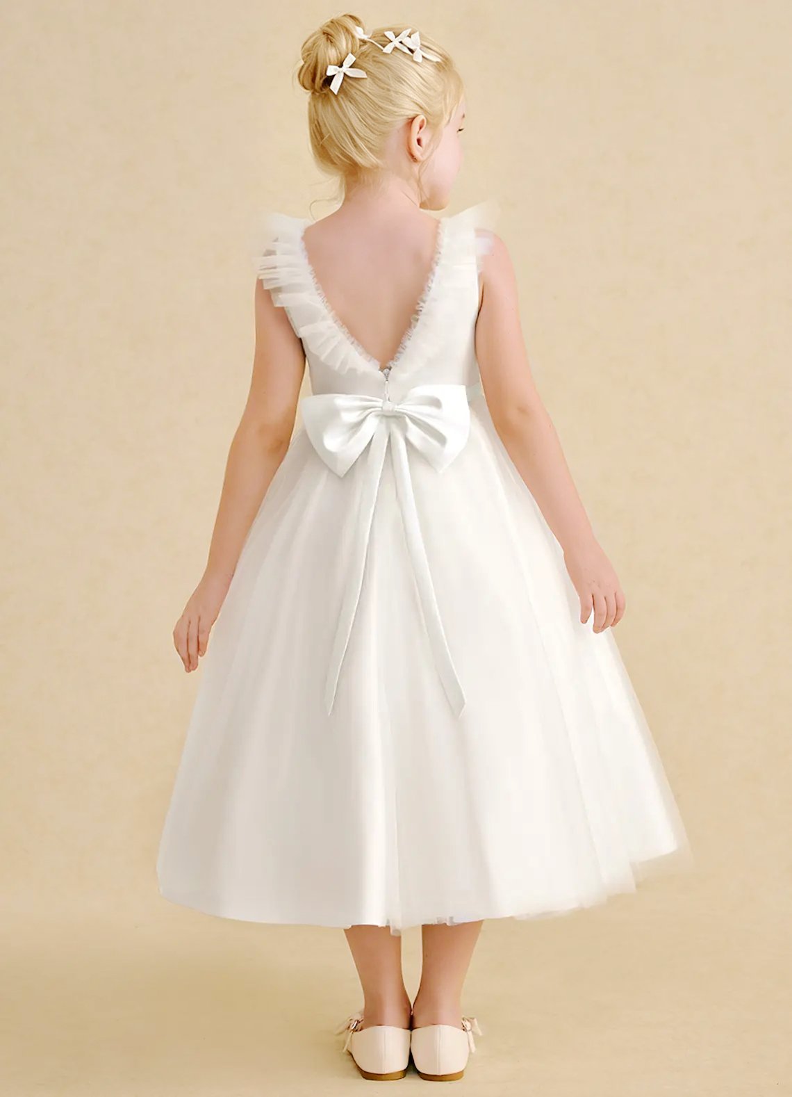 Jirocum Amber Flower Girl Dresses A-Line Bow Tulle Dress