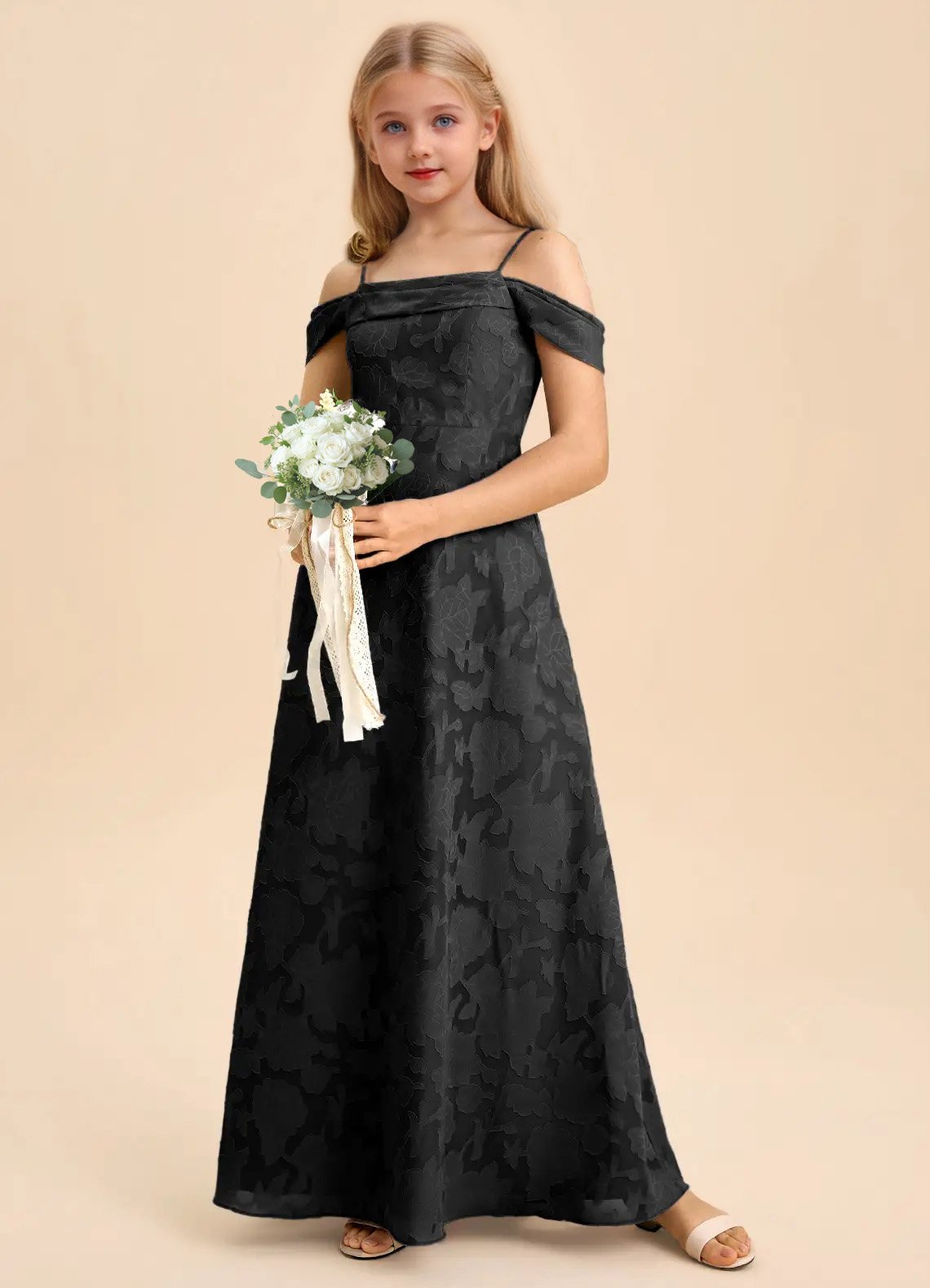 Jirocum Anselie Junior Bridesmaid Dresses A-Line Off the Shoulder Floral Burnout Dress