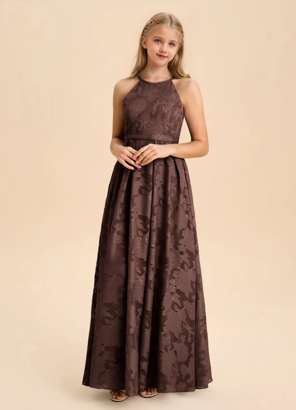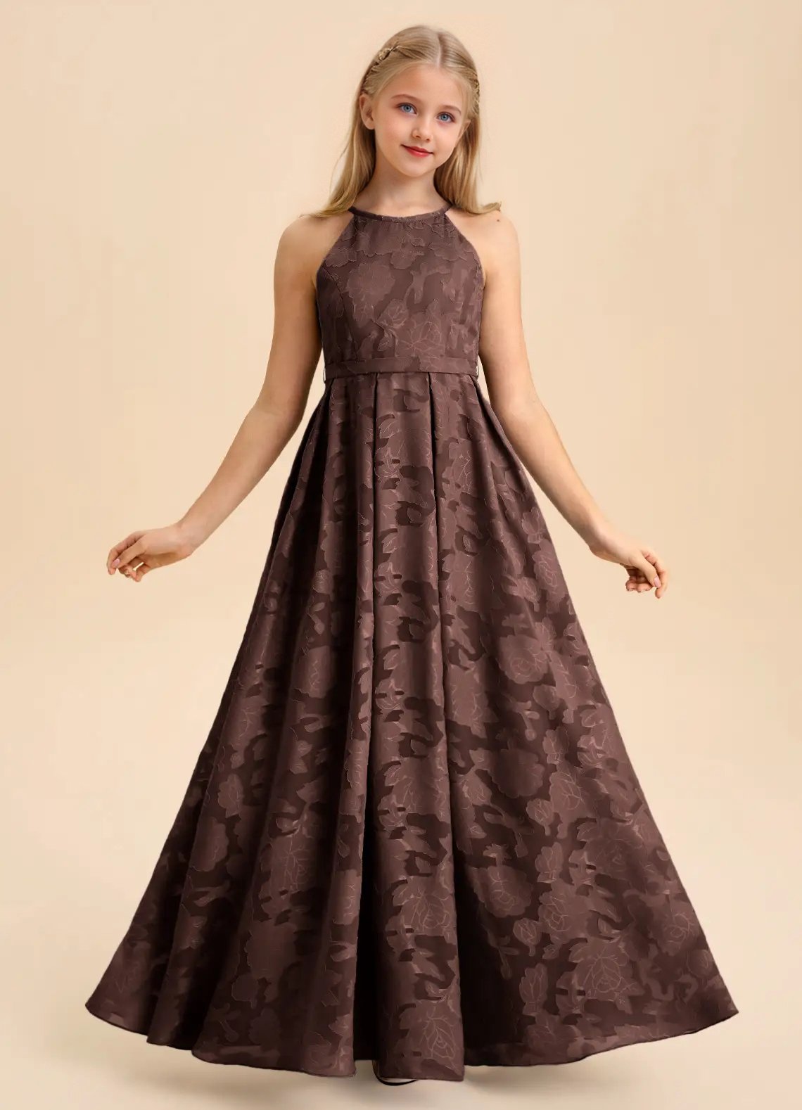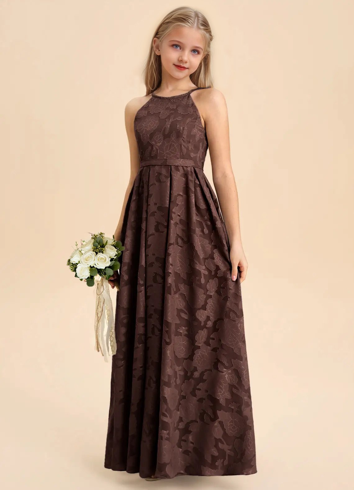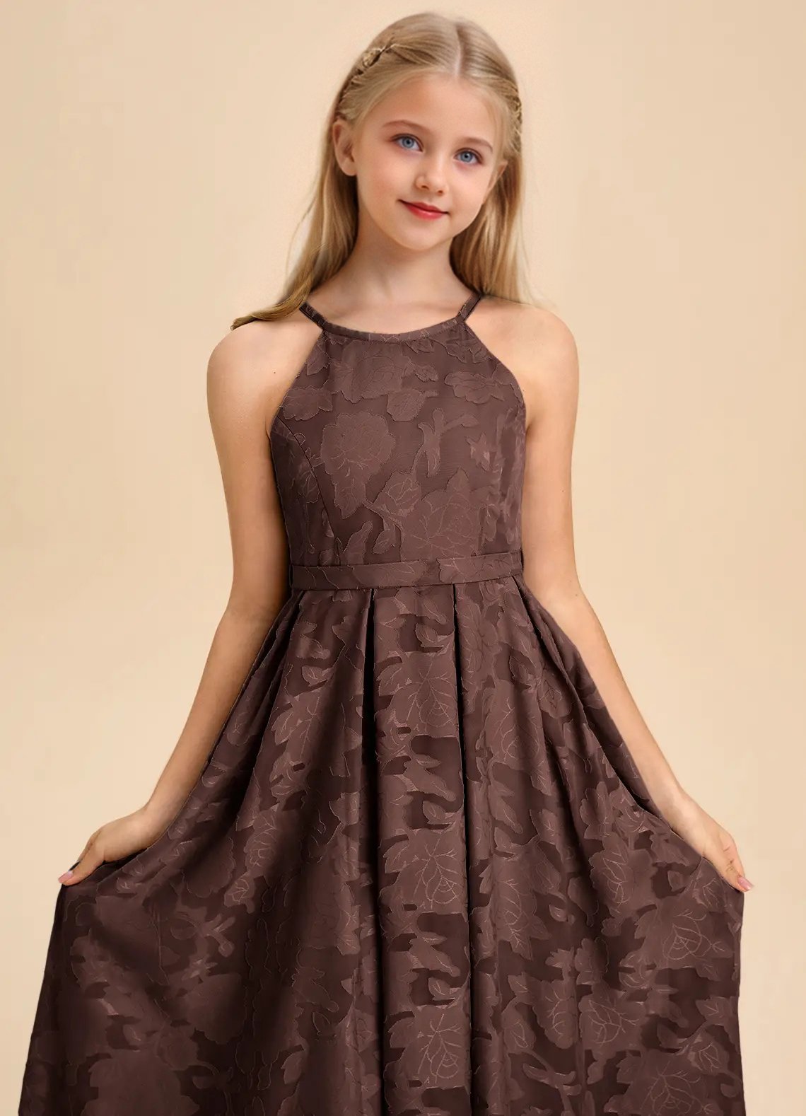Jirocum Arianthe Junior Bridesmaid Dresses A-Line Pleated Floral Burnout Dress