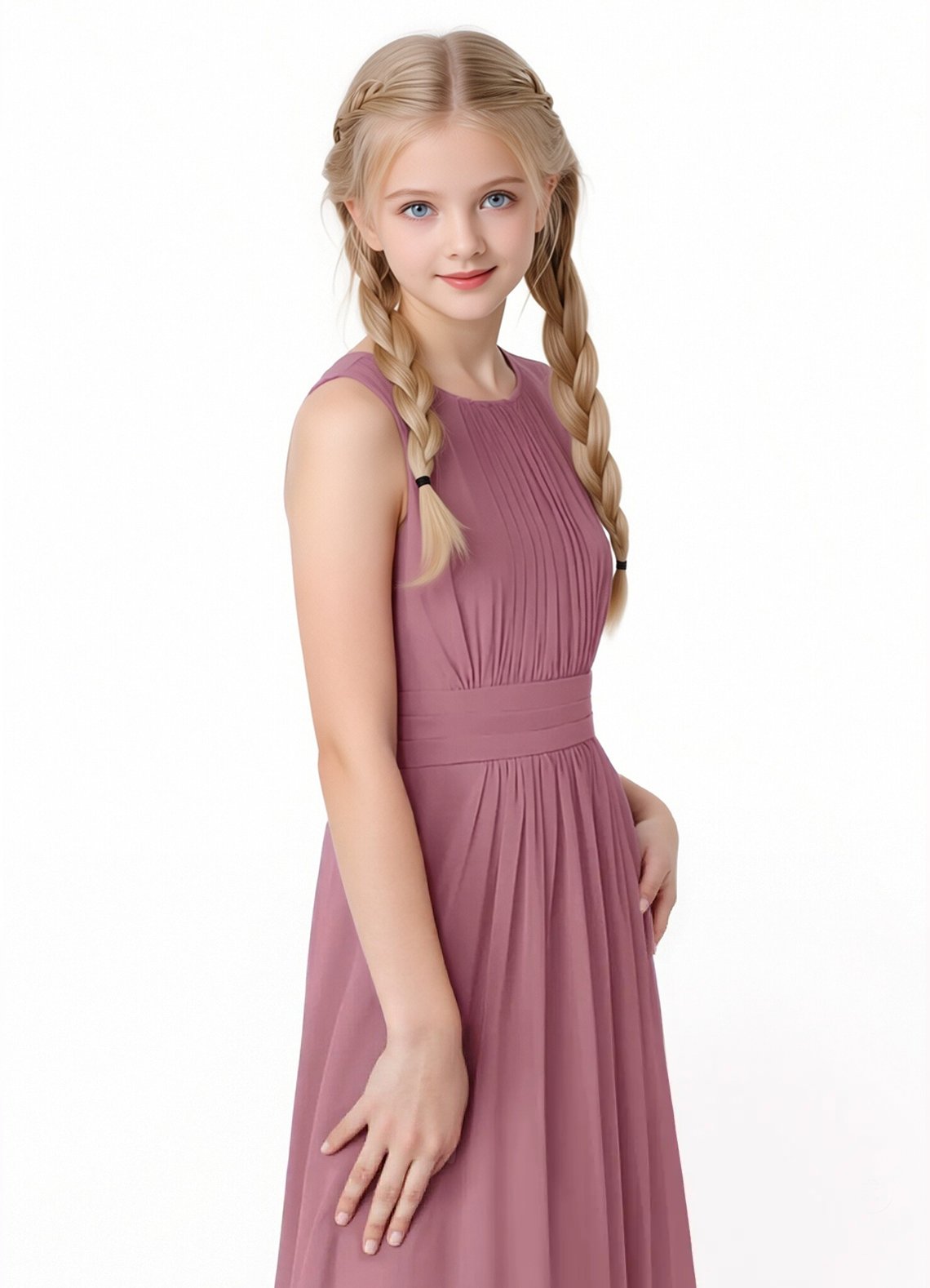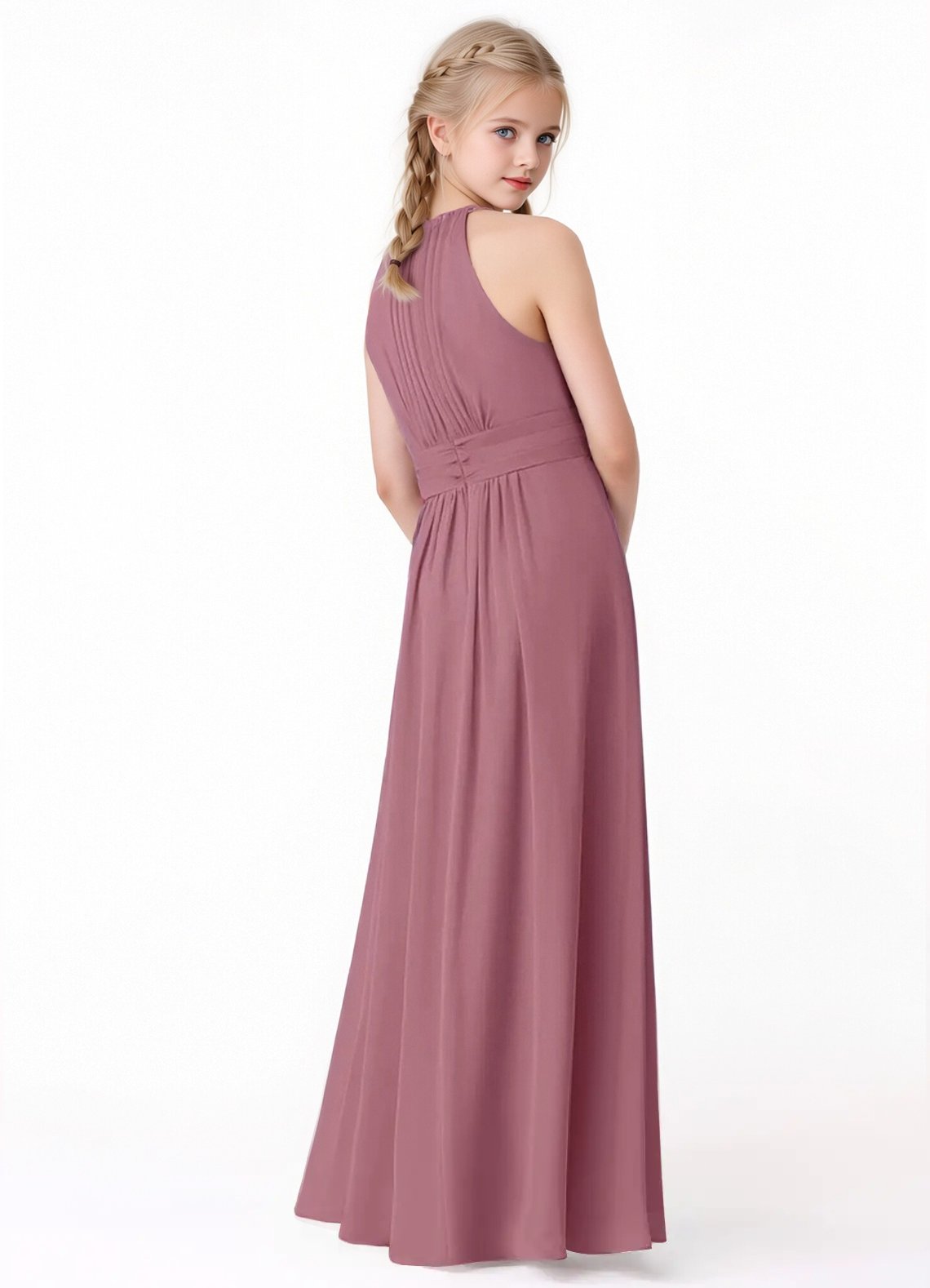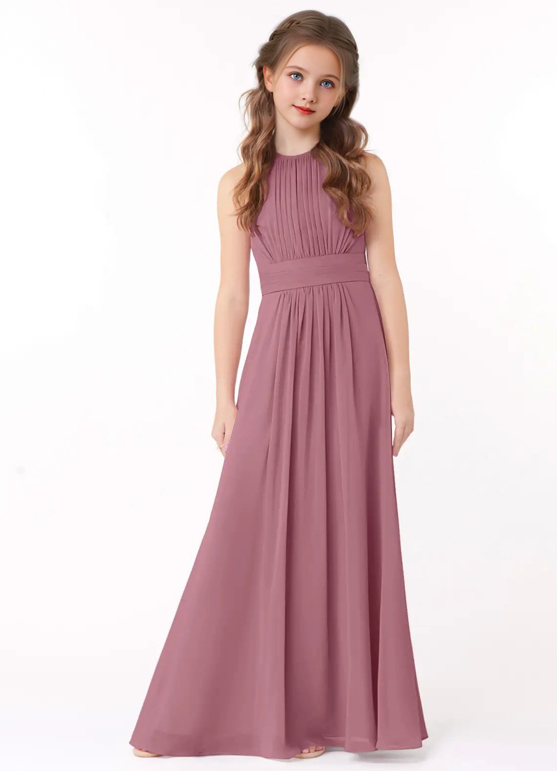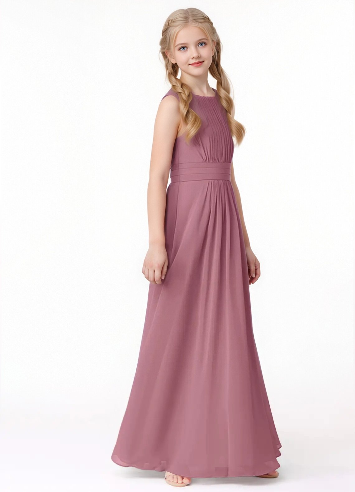 Jirocum Bonnie Junior Bridesmaid Dresses A-Line Pleated Chiffon Dress