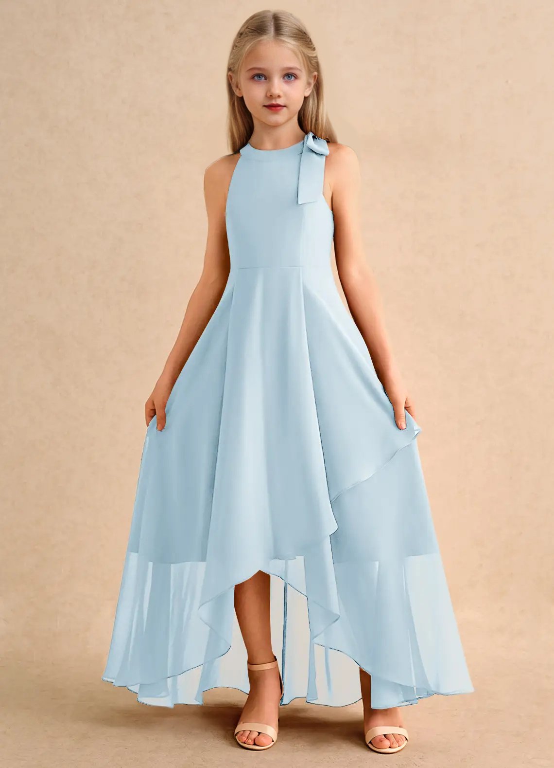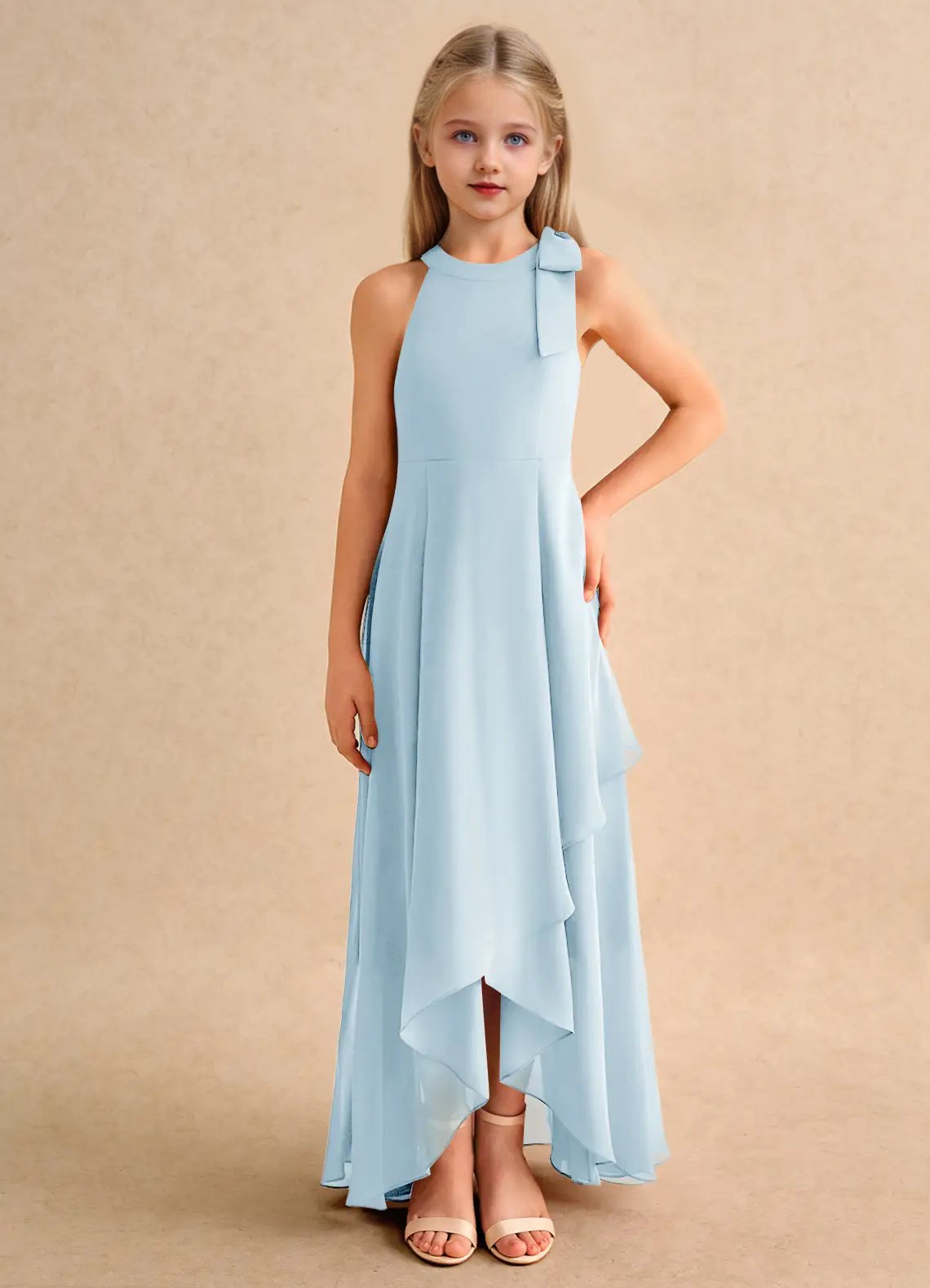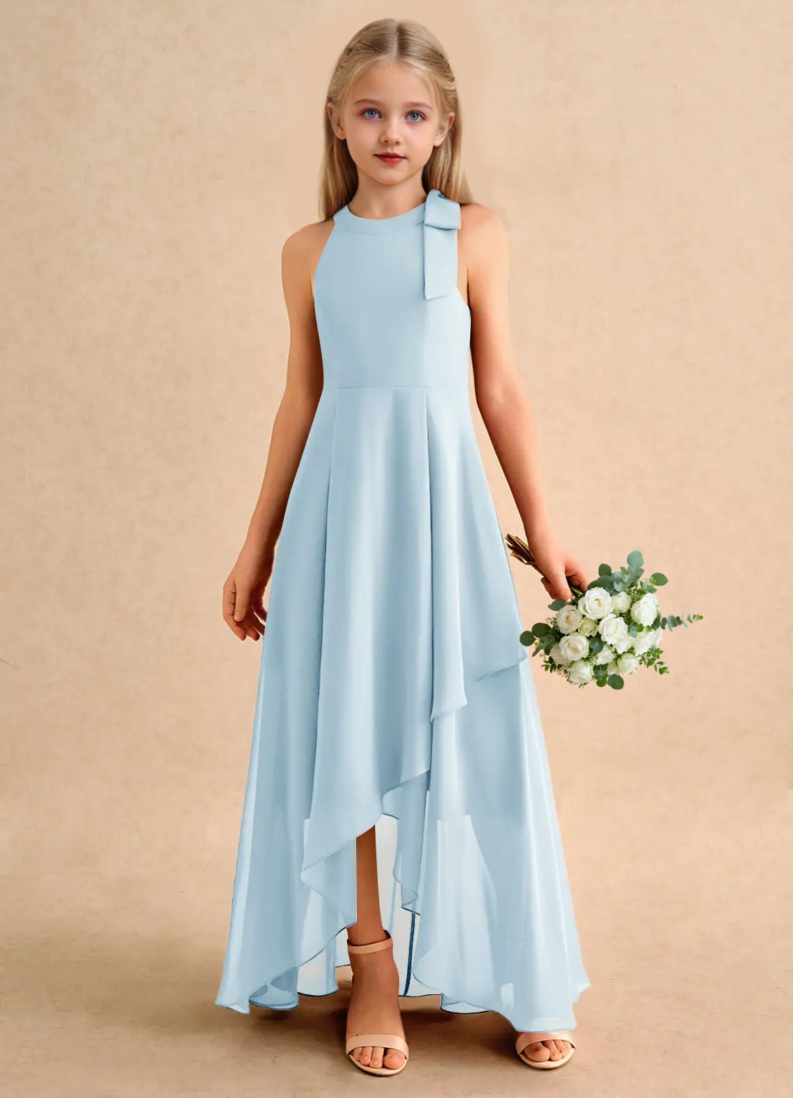 Jirocum Boop Junior Bridesmaid Dresses A-Line Bow Chiffon Dress