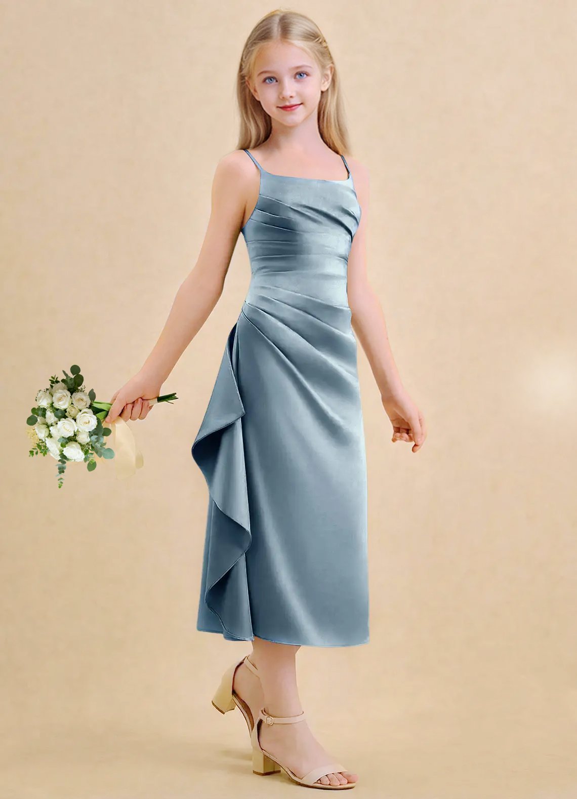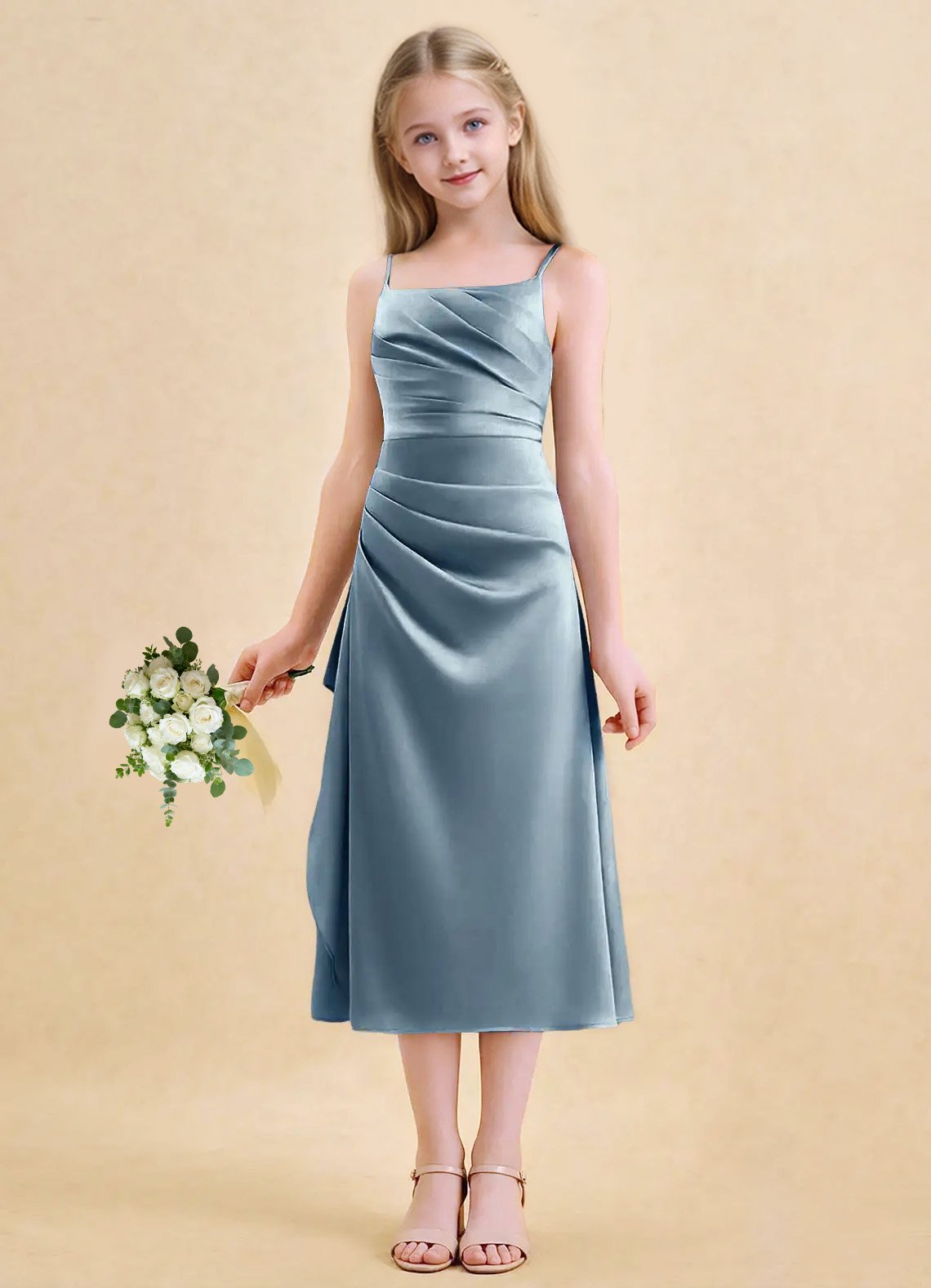 Jirocum Canna Flower Girl Dresses A-Line Pleated Stretch Satin Dress