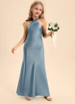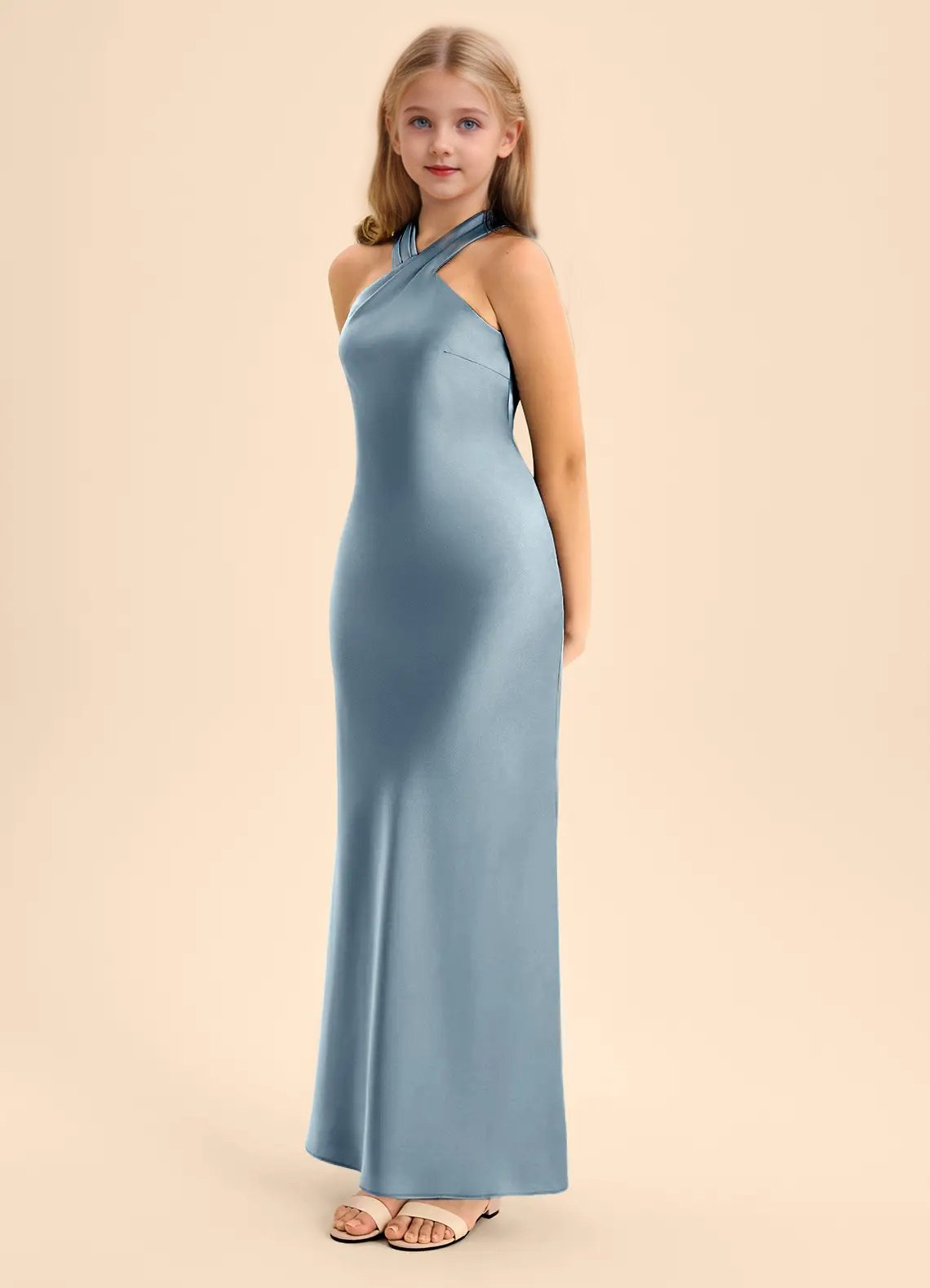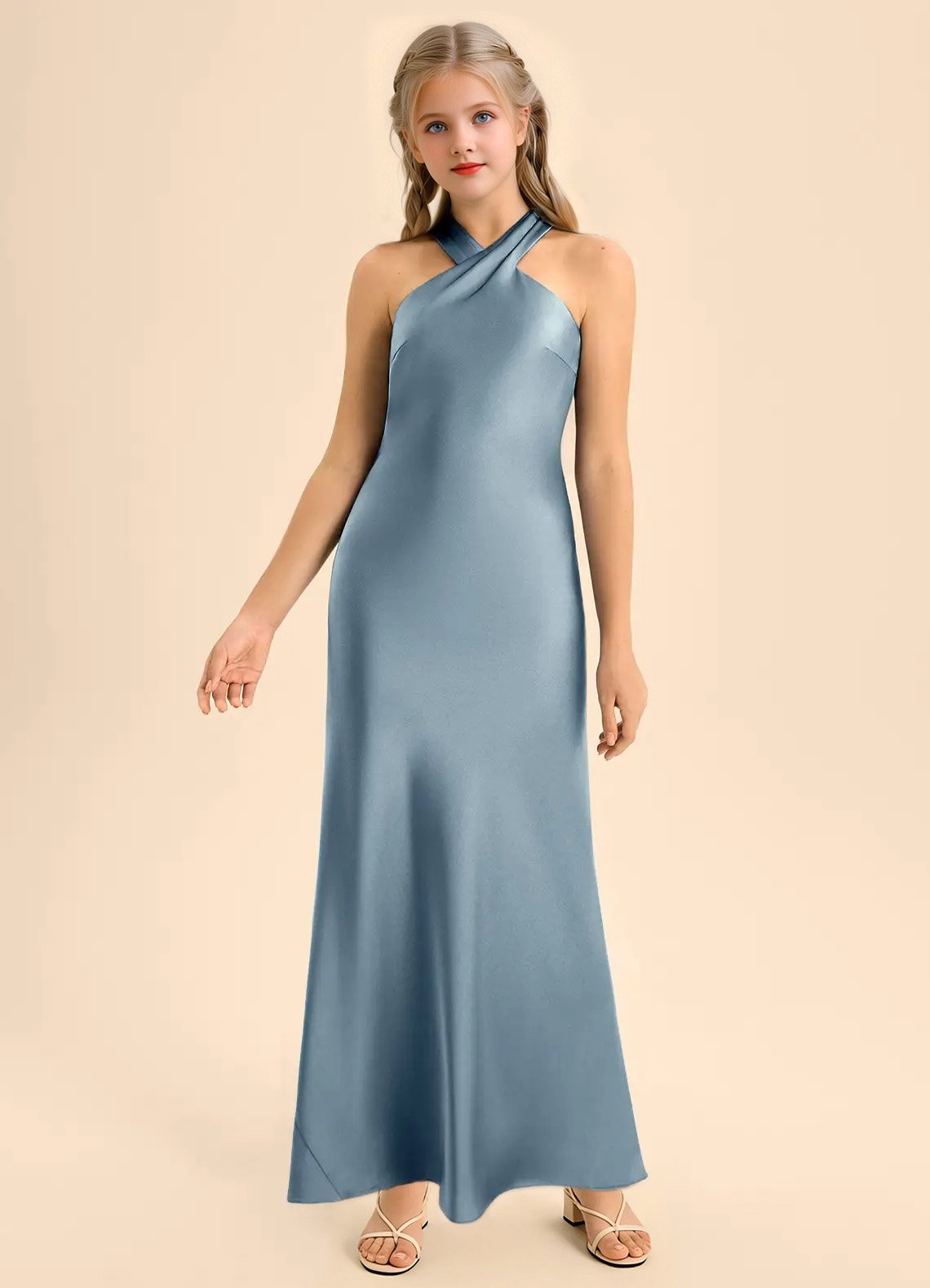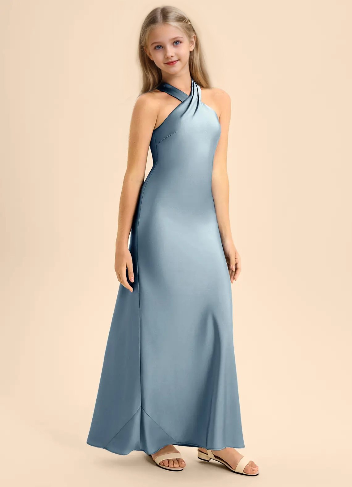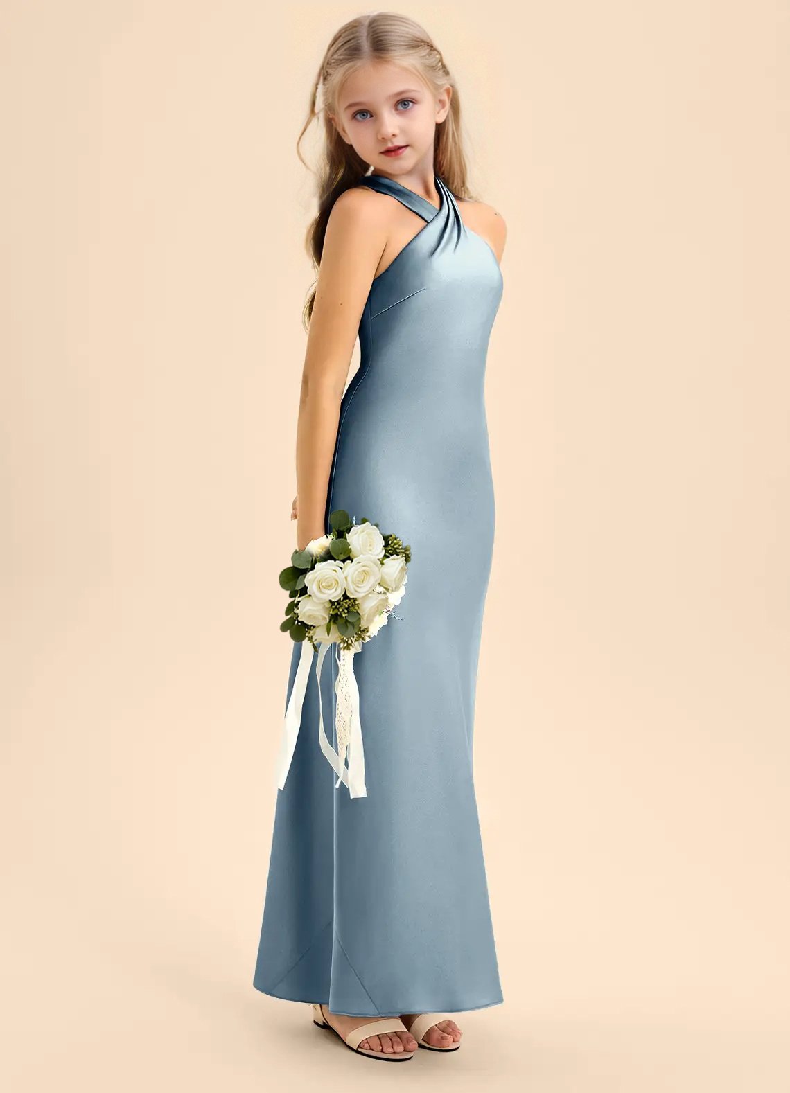Jirocum Doretta Junior Bridesmaid Dresses A-Line Pleated Stretch Satin Dress