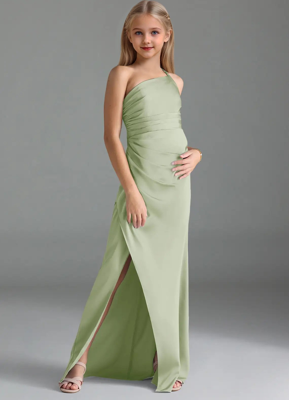 Jirocum Eren Junior Bridesmaid Dresses Sheath Pleated Stretch Satin Dress