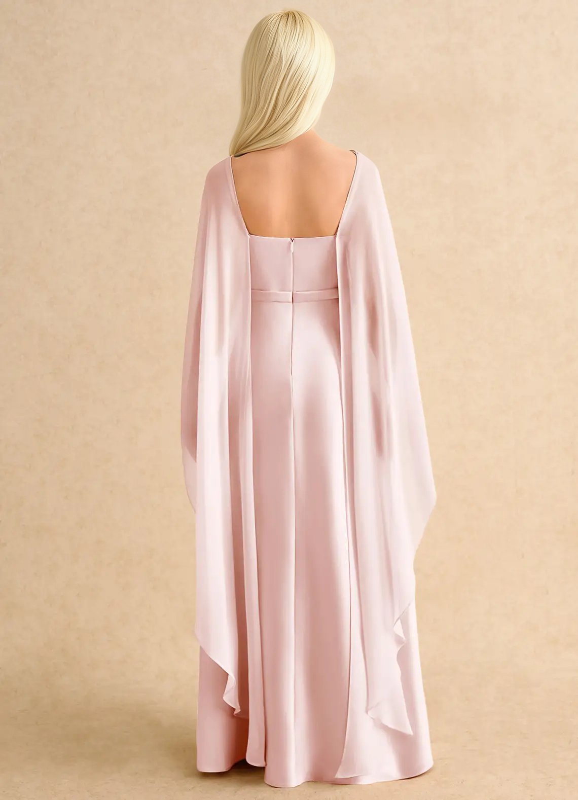 Fishie is an elegant floor-length dress designed for versatile styling. The clean A-line silhouette features a smooth bodice with delicate spaghetti straps, paired with a flowing skirt that drapes beautifully. A detachable chiffon cape overlay adds a soft, graceful touch.