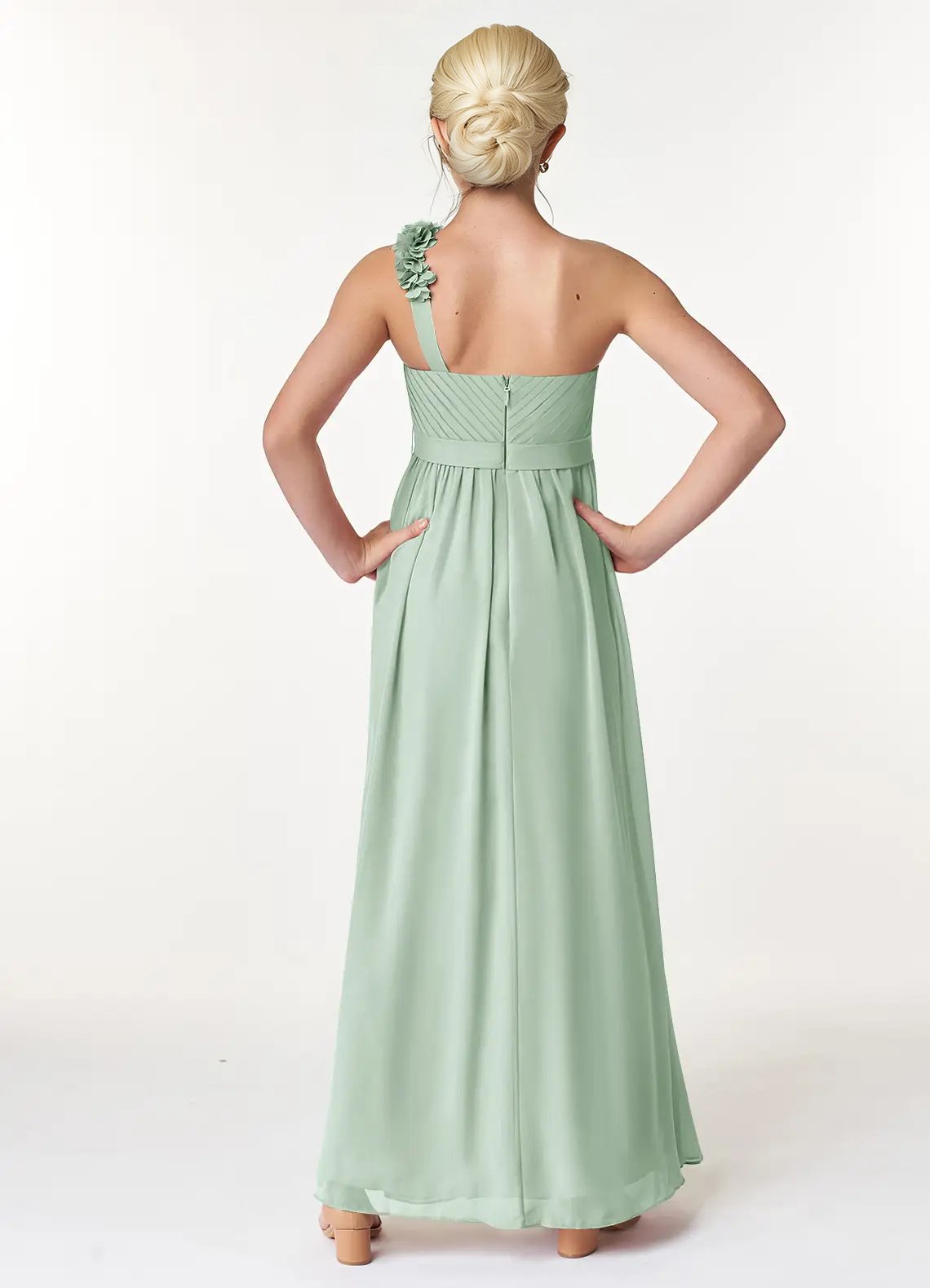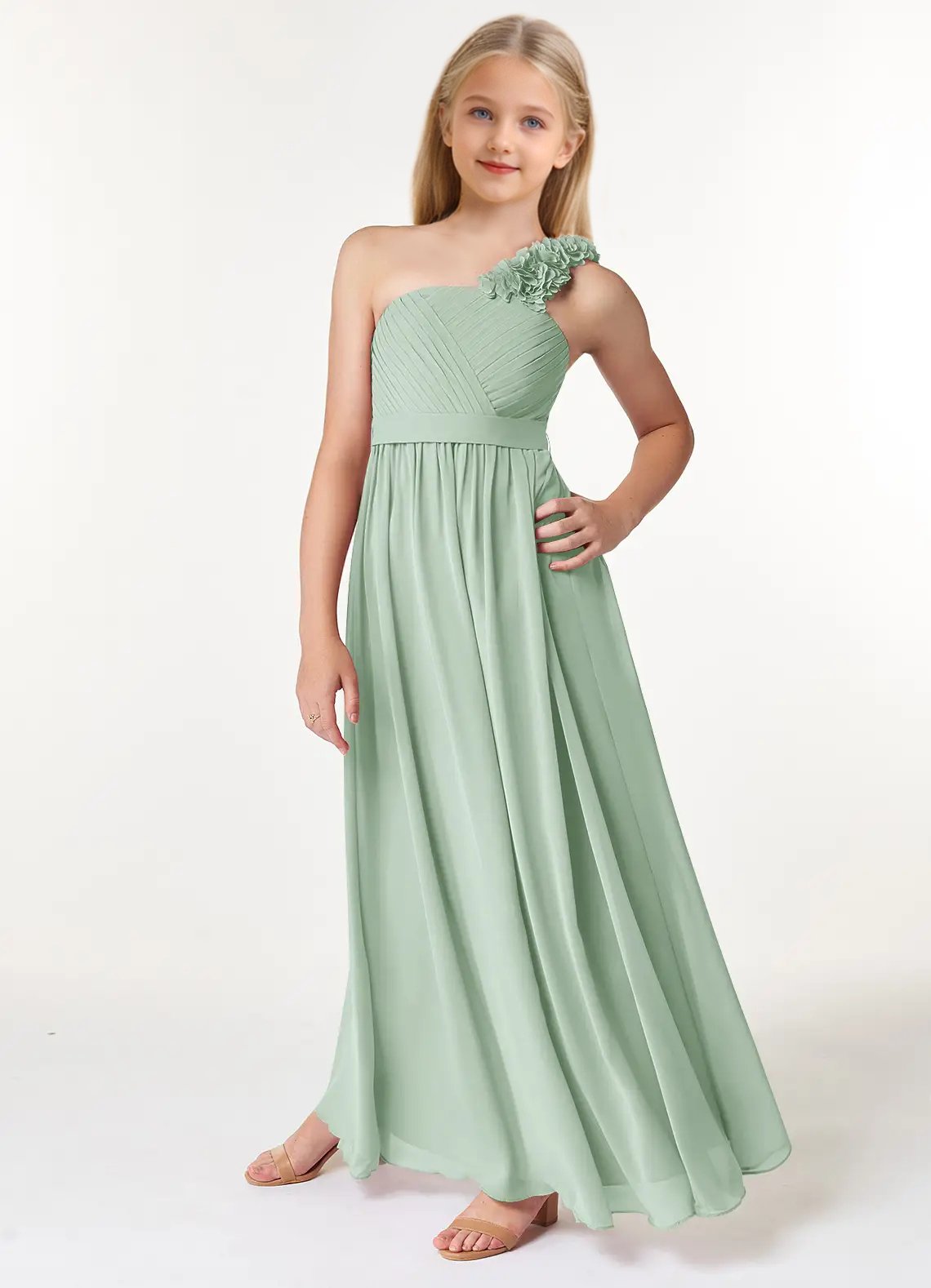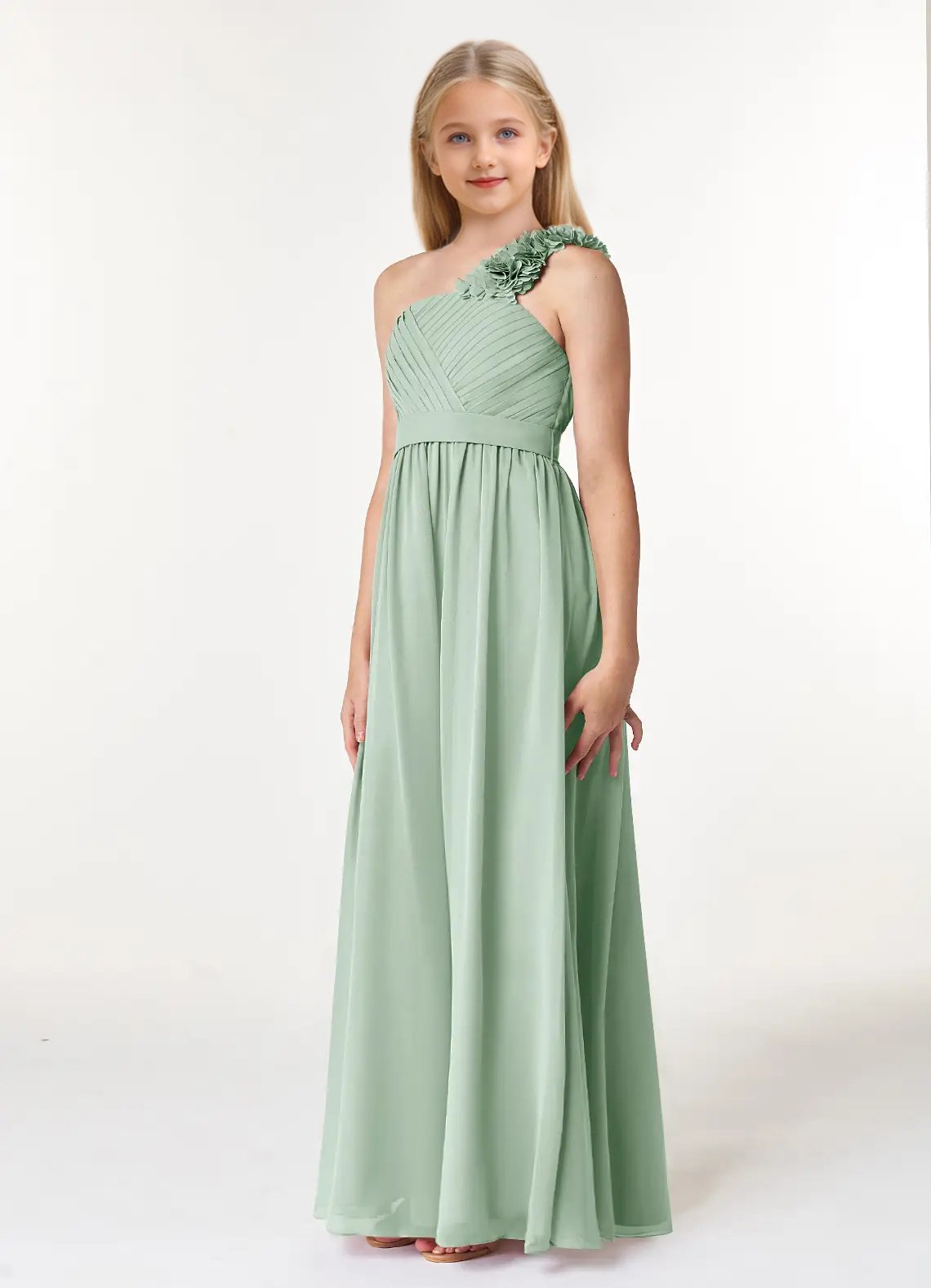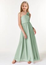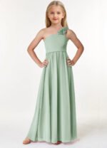Jirocum Flower Junior Bridesmaid Dresses A-Line Pleated Chiffon Dress