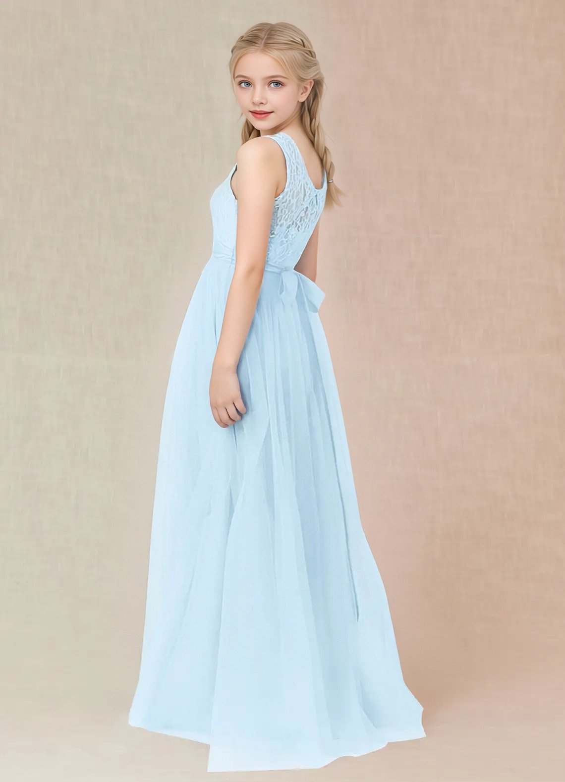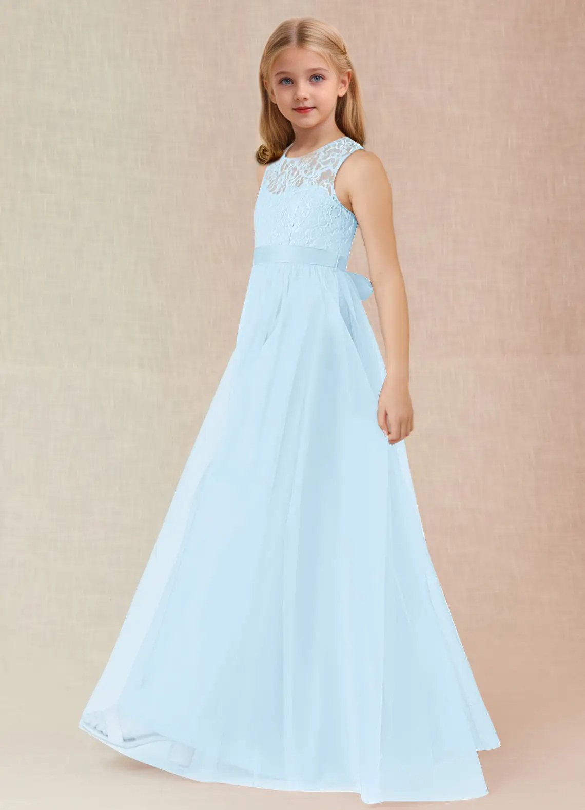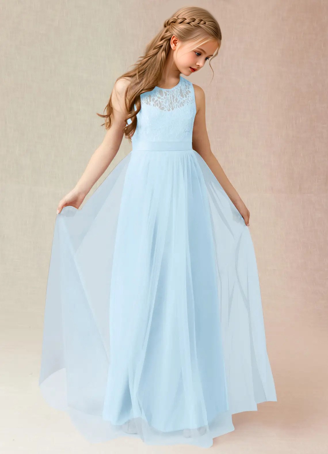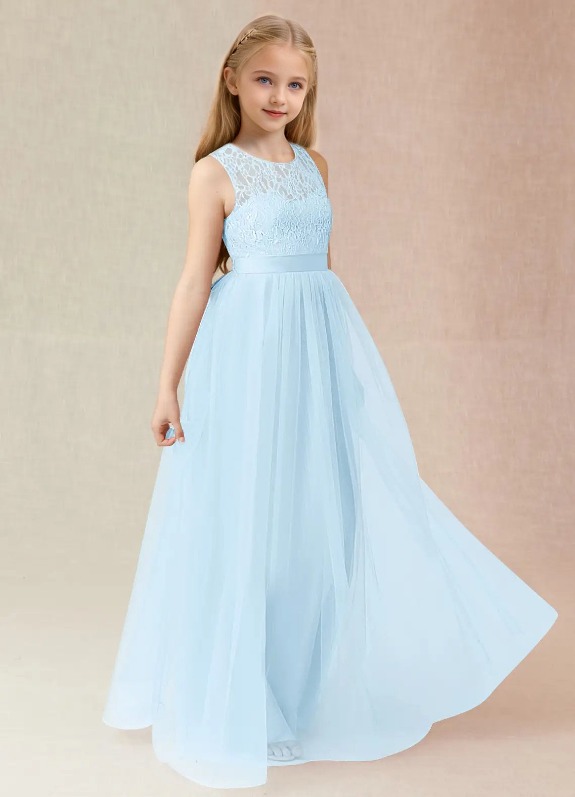 Jirocum Georgette Junior Bridesmaid Dresses A-Line Lace Tulle Dress