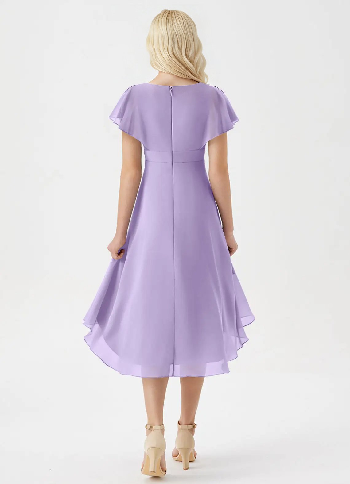 Let her float down the aisle in the Graciela dress—an airy chiffon dream with a pleated asymmetrical A-line skirt, flutter sleeves, and a flattering V-neckline that’s equal parts sweet and sophisticated. The cinched waist adds just the right touch of shape for a graceful, twirl-worthy silhouette.