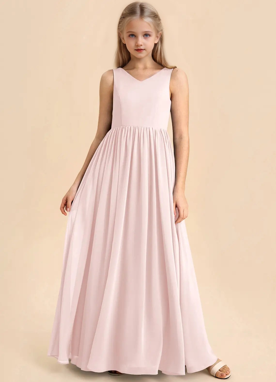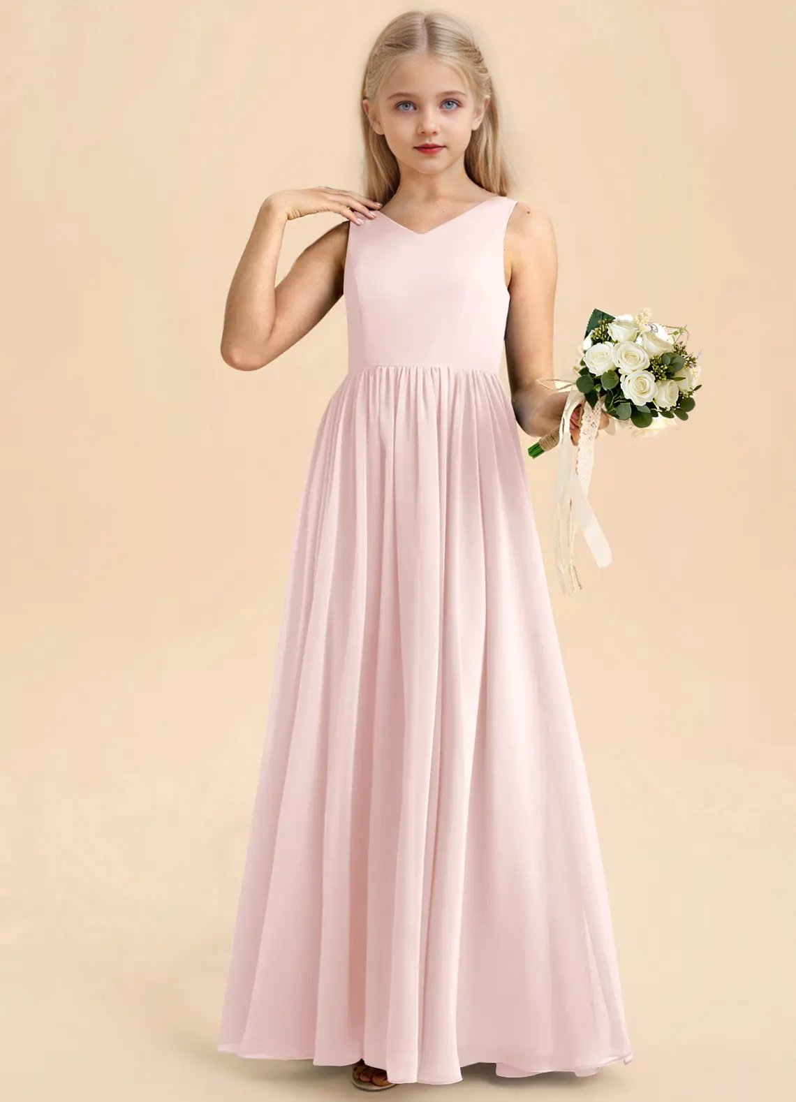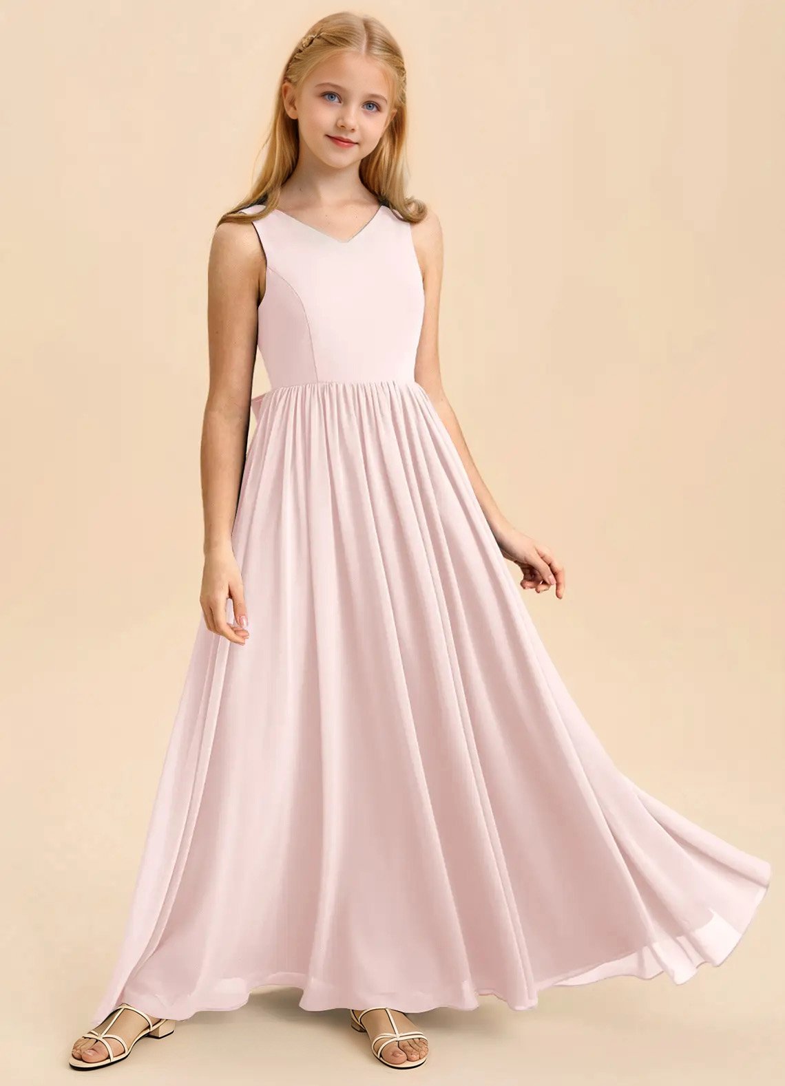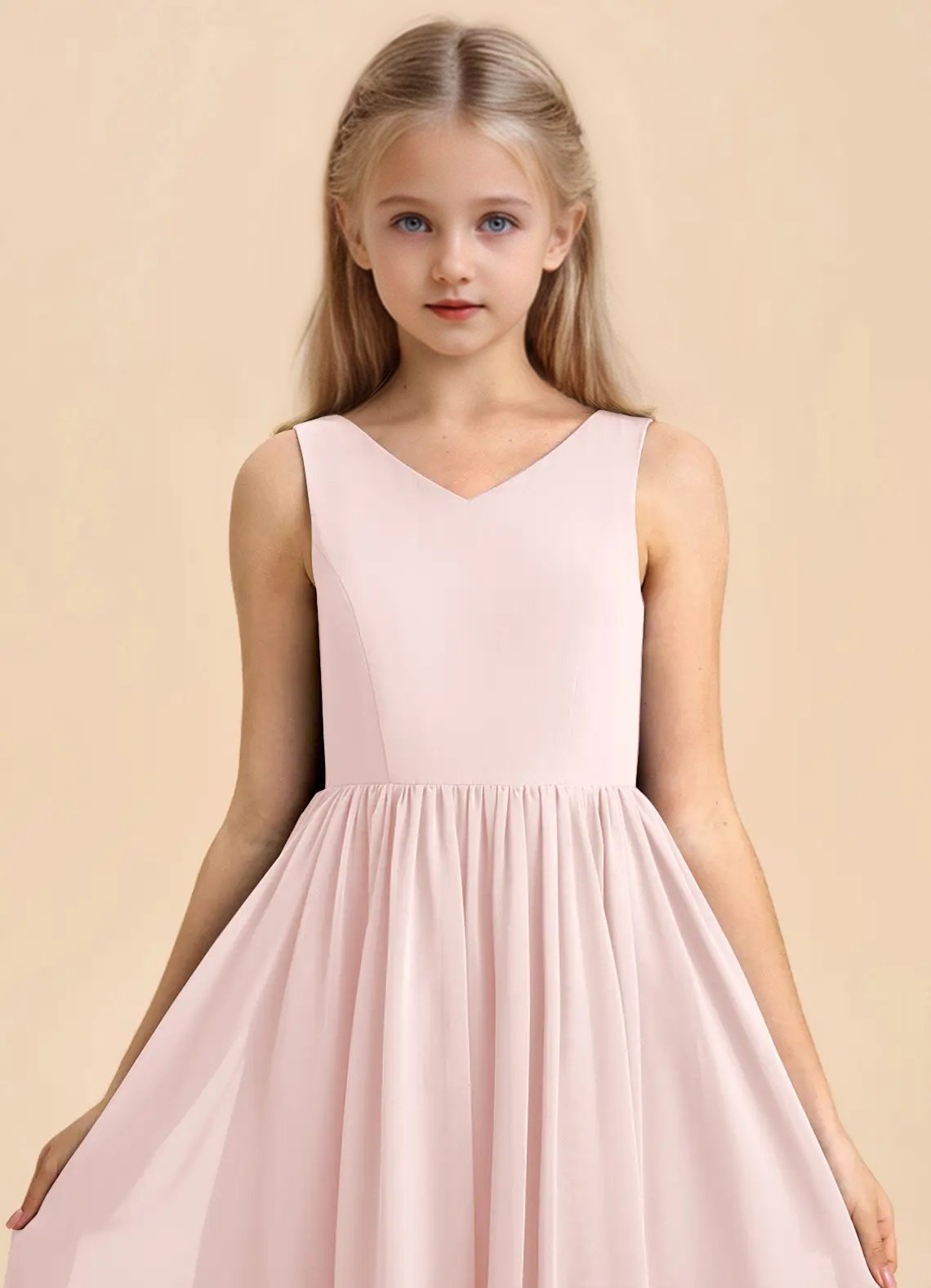 Jirocum Hathaway Junior Bridesmaid Dresses A-Line Bow Chiffon Dress