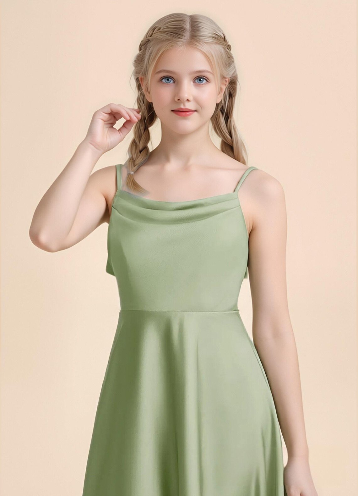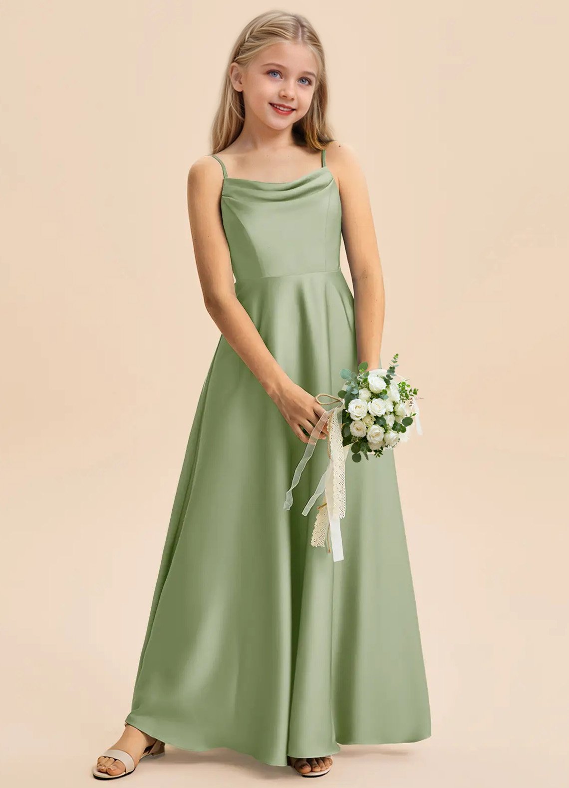 Jirocum Isolde Junior Bridesmaid Dresses A-Line Pleated Stretch Satin Dress