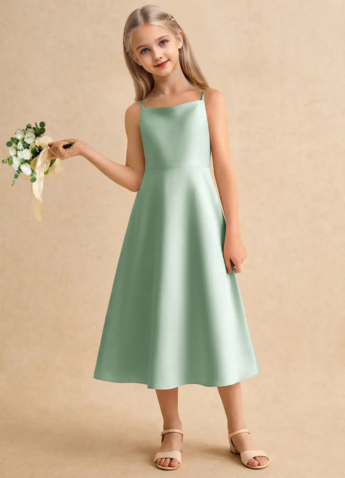 Jirocum Jaella Flower Girl Dresses A-Line Pleated Matte Satin Dress