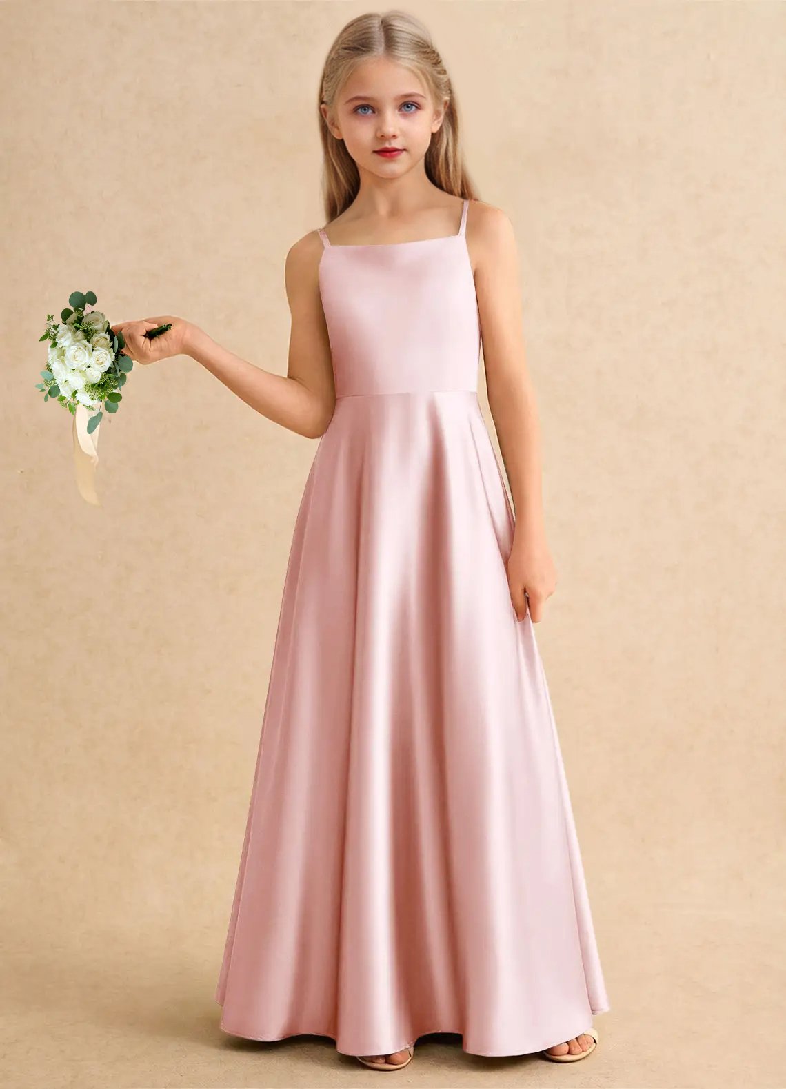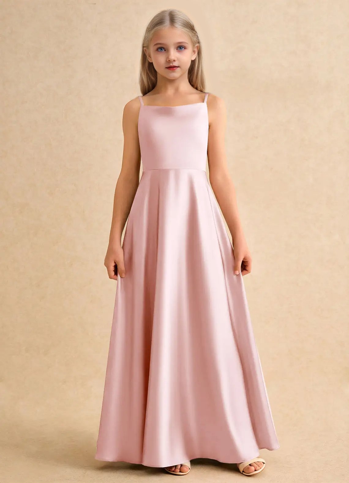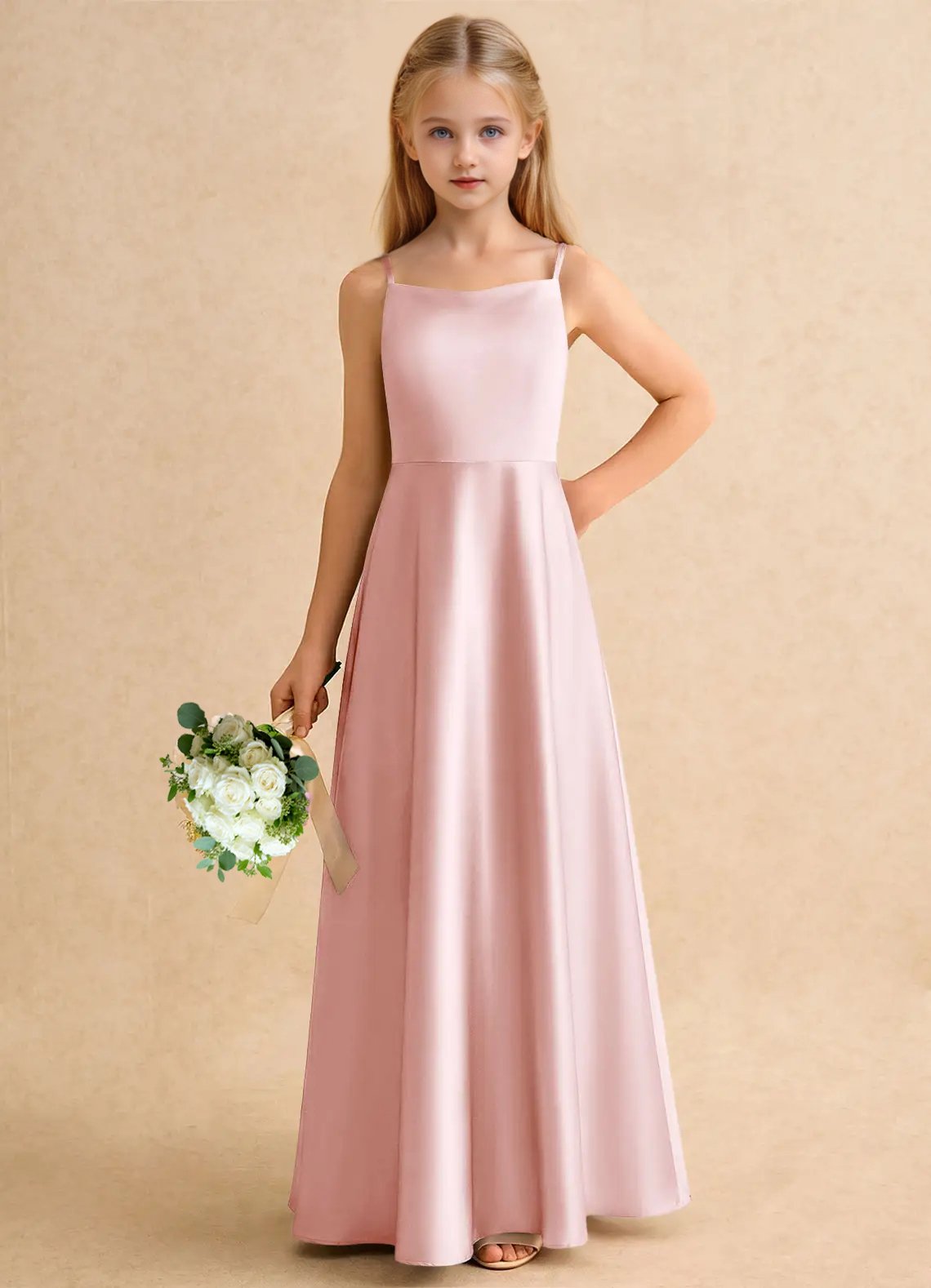 Jirocum Joella Junior Bridesmaid Dresses A-Line Pleated Stretch Satin Dress