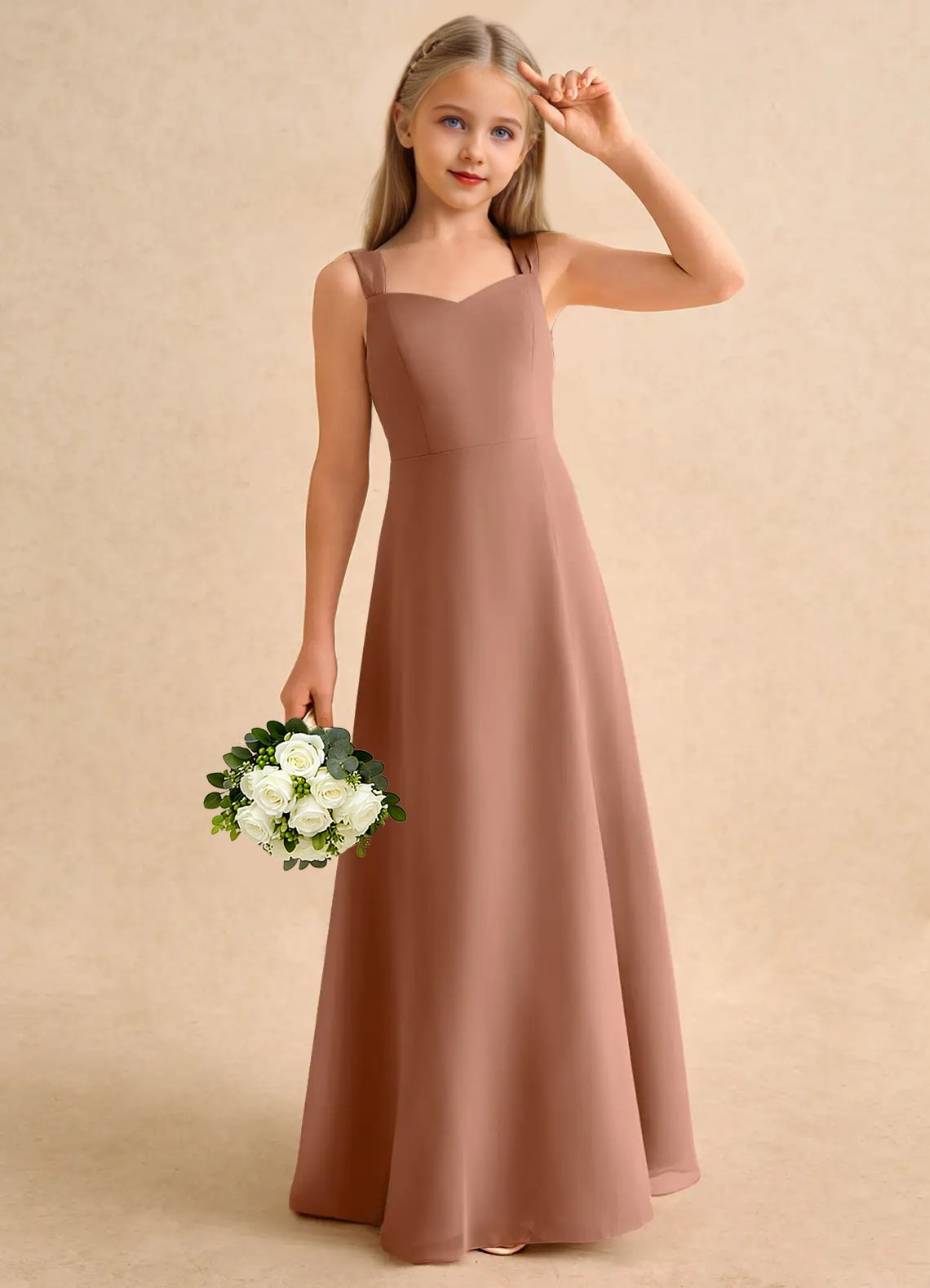 Jirocum Makani Junior Bridesmaid Dresses A-Line Sweetheart Neckline Chiffon Dress