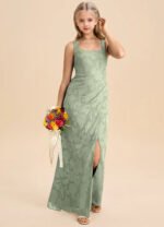 Jirocum Mero Junior Bridesmaid Dresses Sheath Pleated Floral Burnout Dress