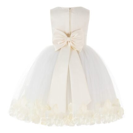 Ivory Elegant Wedding Pageant Special Events Petals Flower Girl Dress with Bow Tie Sash 302T(1)