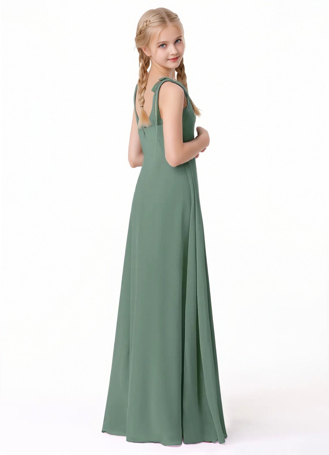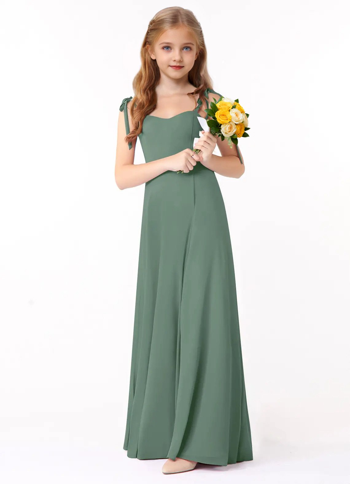Whimsical and sweet, Rosey is a wonderful choice for your junior bridesmaid. This delicate dress features a soft sweetheart neckline and shoulder ties that allow you to style them however you like. Cut from flowy chiffon, her floor length A-line skirt has a leg slit that allows comfort for walking.