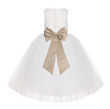 Ivory Floral Lace Flower Girl Dress Special Events Christening Pageant Gown Communion Recital LG7(2)