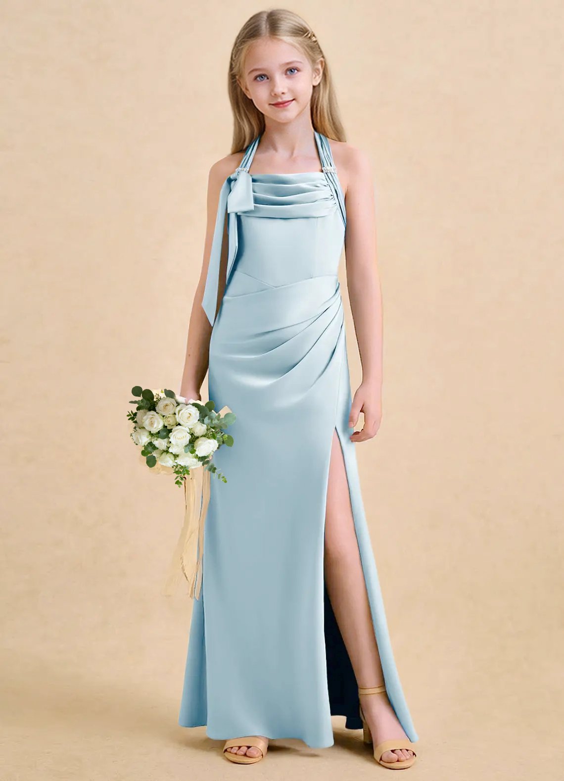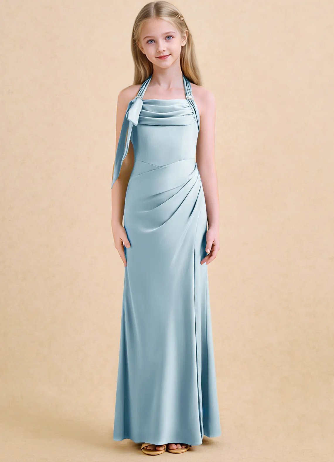 Jirocum Snow Junior Bridesmaid Dresses Sheath Pleated Stretch Satin Dress