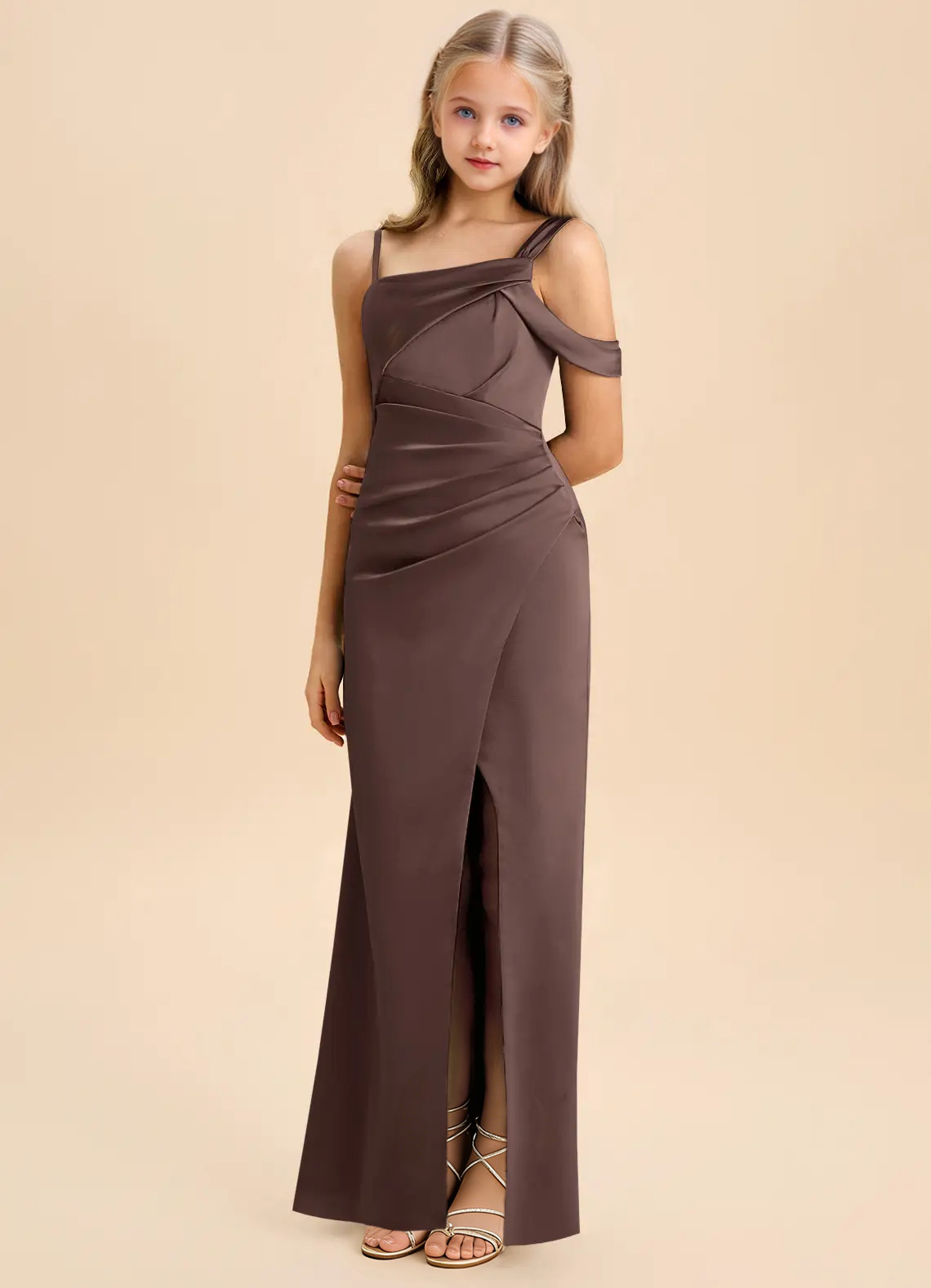 Jirocum Wynter Junior Bridesmaid Dresses Pleated Stretch Satin Dress