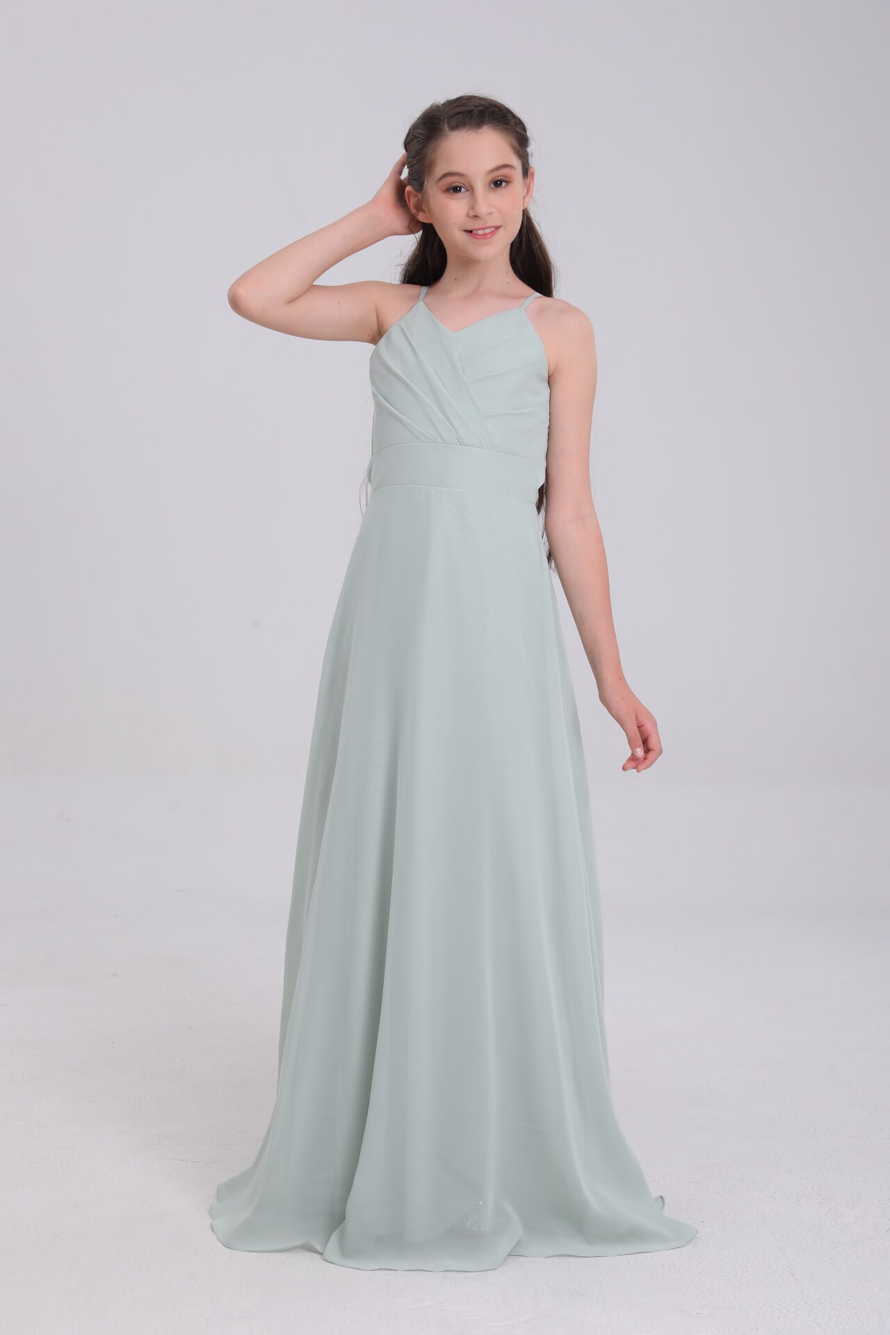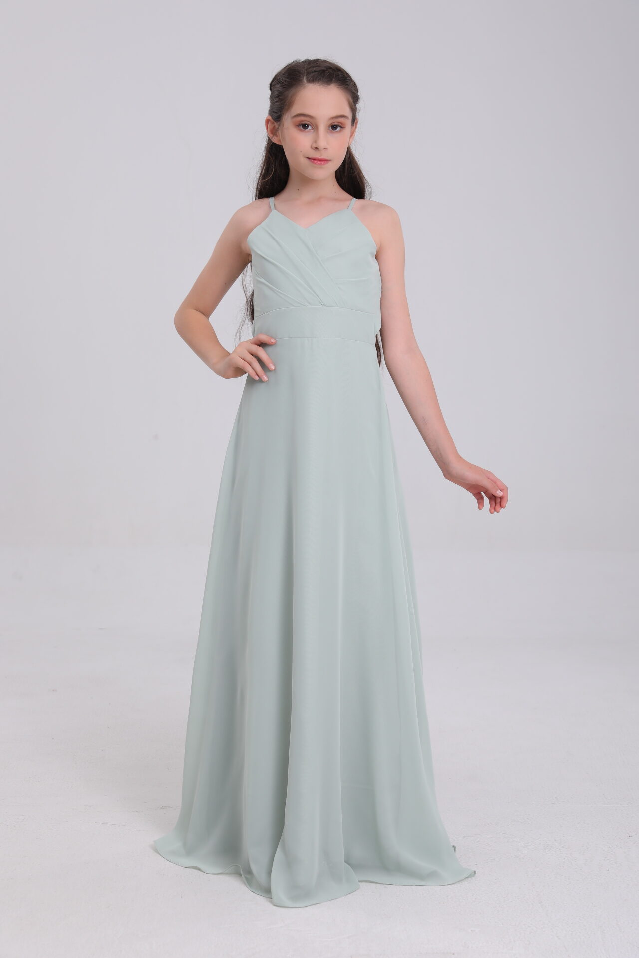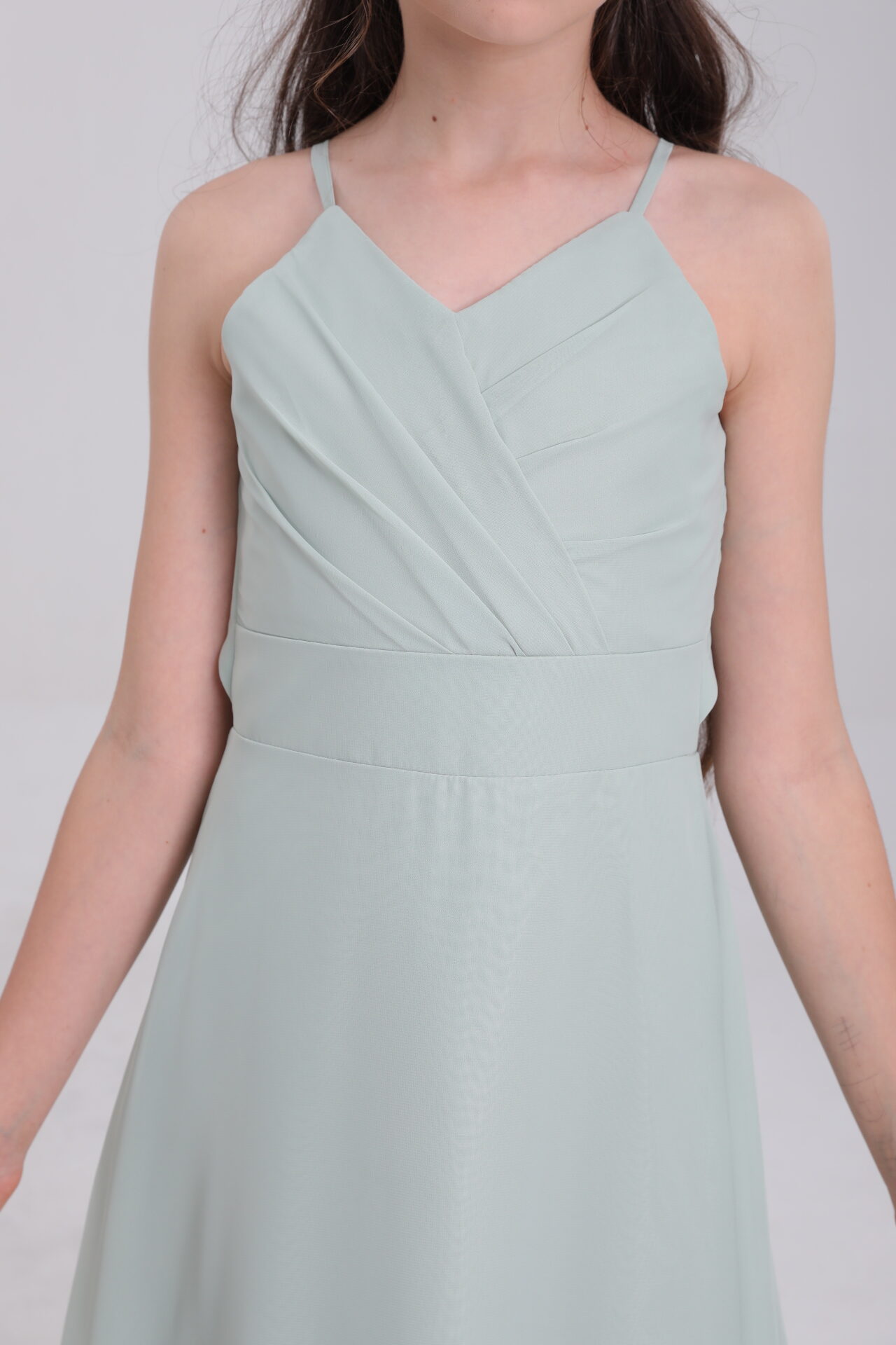 Dress your little one in enchantment with this sage green satin gown – where innovative design weaves a fairy – tale of elegance for every magical moment ✨