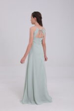 Sage green satin gown – innovative cuts, silky drape, made for memorable, magical events.