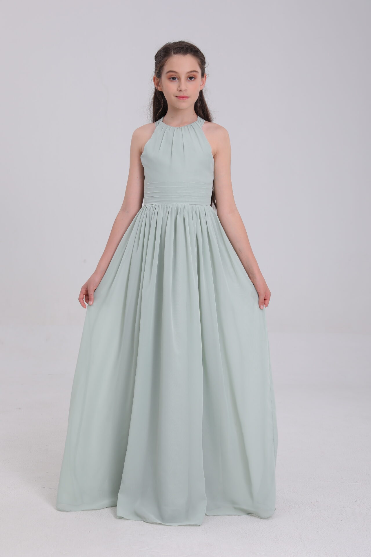 - Waist – Defining Detail 👐: A subtle, ruched waistband nips in gently, highlighting their shape without feeling tight. It creates a pretty “princess silhouette” that complements the gown’s flowy beauty.